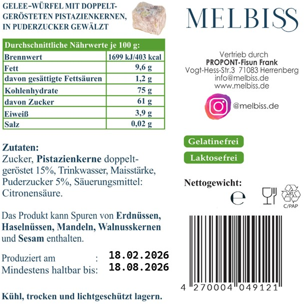 Diese Komposition folgt der ältesten Rezeptur unseres Konfekts – ein Erbe, das Generationen überdauert hat. Die Pistazien, geerntet aus den sonnenverwöhnten Gärten Südostanatoliens, wo sie seit über 6000 Jahren kultiviert werden, verleihen dem Konfekt ihr unverwechselbares, eine geschmackliche Harmonie, die Tradition und Sinnlichkeit in jedem Bissen vereint.